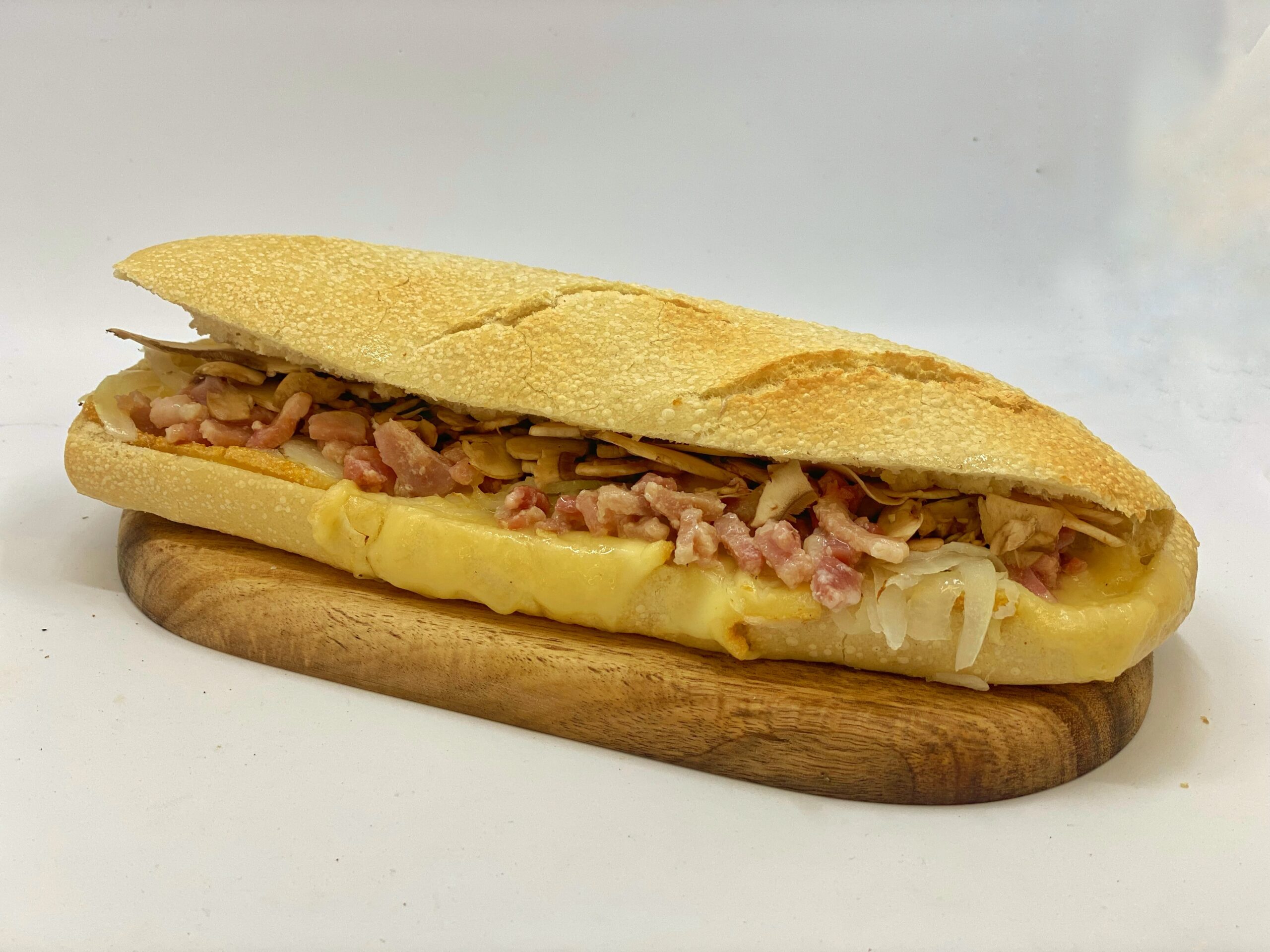 lardons , champignon , oignon , béchamel et raclette fromage